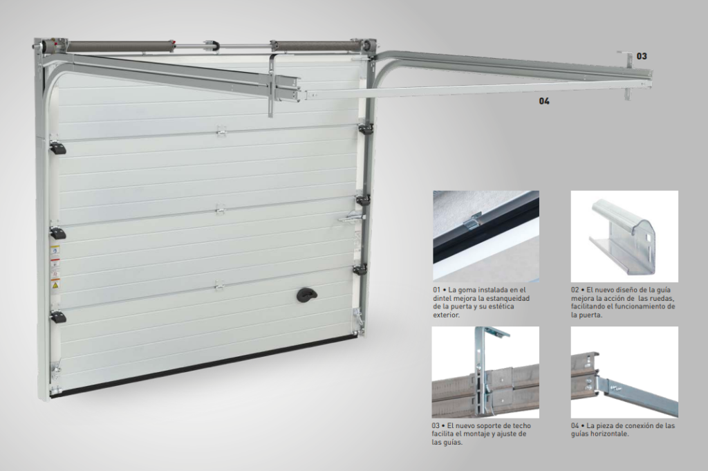La calidad en la concepción de estos motores es otra de sus características fundamentales, asegurando durabilidad y fiabilidad. A esto se suma la elegancia de su diseño superior, que no solo garantiza un óptimo rendimiento, sino que también aporta un toque estético que se integra perfectamente con el estilo moderno de las puertas seccionales.